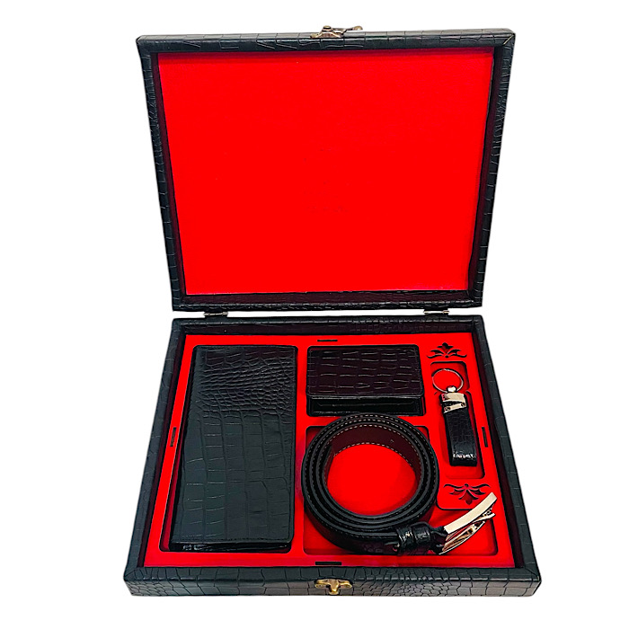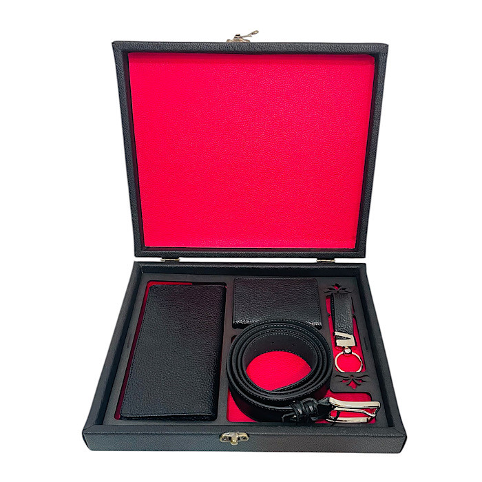 ست چهارتیکه چرم طبیعی شامل کیف کتی/ جاکارتی/ جاکلیدی و کمربند انتخابی خاص برای هدیه ای کاربردی و ماندگار تمامی اقلام این ست از چرم باکیفیت تهیه شده و مناسب استفاده روزمره و رسمی است باکس شکیل چرمی ست چهارتیکه ان را به گزینه ای ایده ال برای هدیه تولد/ سالگرد /روز مرد و مناسبت های ویژه تبدیل کرده است