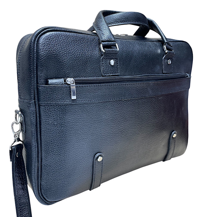 کیف اداری مردانه تمام چرم گاوی با بهترین متریال چرم و یراق فقط در رنگ مشکی تولید شده دارای محافظ لپتاپ بند دوشی هم دارد مناسب اداره و جلسات کاری ابعاد 41/30/8