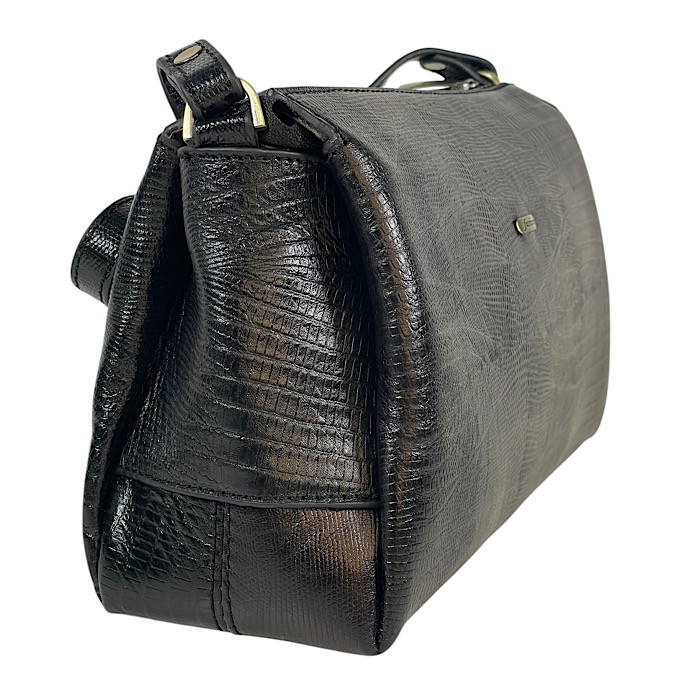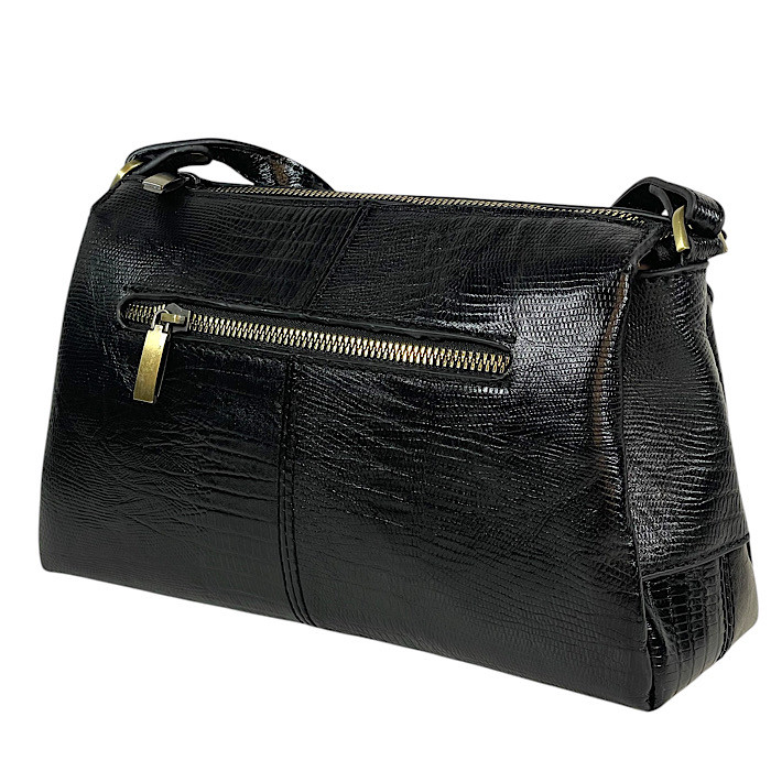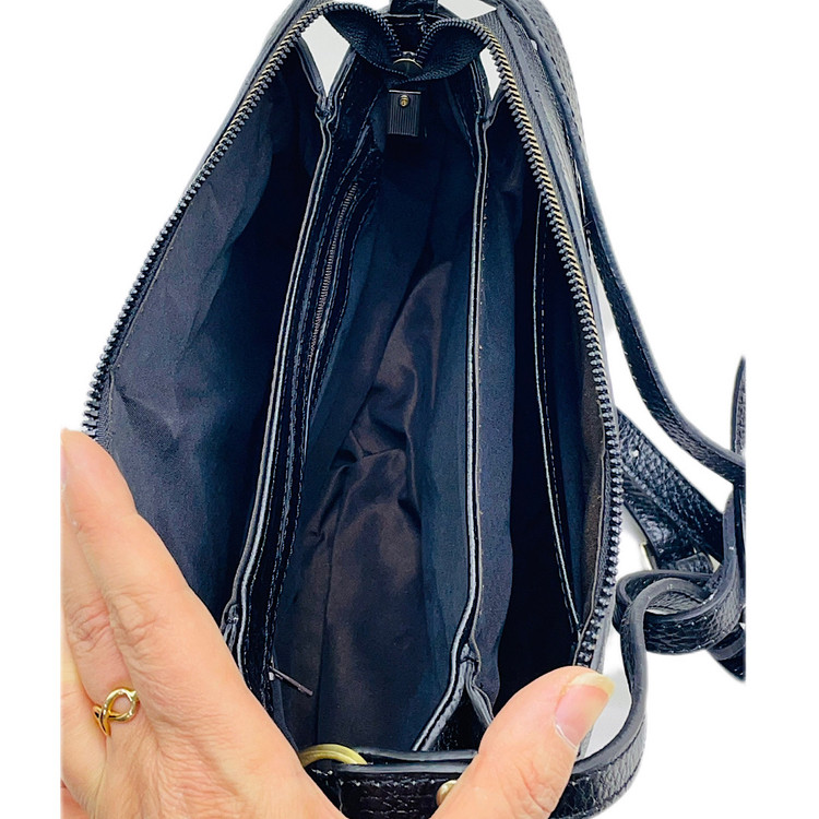 فضای داخل کیف 3 پارتیشن دارد که شامل یک جیب معمولی و یک جیب زیپ دار است .پشت کیف هم یک زیپ کار شده است دارای بند بلند 1/5 متری که قابل تنظیم است و متصل به کیف است.ودر 3 طرح فلوتر ،لیزارد و کروکو میباشد.
